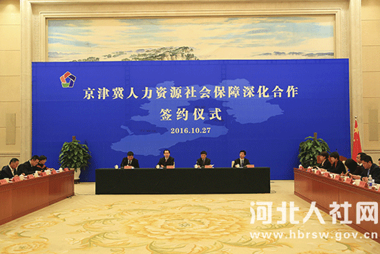 為深入貫徹落實《京津冀協(xié)同發(fā)展規(guī)劃綱要》和河北省委、省政府要求,加快京津冀人社一體化進程,10月27日,我省與京、津人社部門分別簽署《推動人力資源和社會保障深化合作協(xié)議》、《專業(yè)技術人員職稱資格互認協(xié)議》等系列協(xié)議,在推動三地就業(yè)創(chuàng)業(yè)服務一體化、社會保障順暢銜接、深化區(qū)域人才交流、跨地區(qū)勞動監(jiān)察協(xié)作、專業(yè)技術人員職稱資格互認、留學人員創(chuàng)業(yè)園共建等多方面達成一致。北京市人社局黨組書記、局長徐熙,河北省人社廳黨組書記、廳長王亮,河北省人社廳黨組副書記、副廳長趙新喜,天津市人社局副局長于茂東等領導共同出席簽約儀式。河北省人社廳副廳長景慶雨主持簽約儀式。